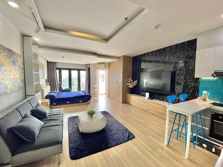 1. Căn hộ rộng rãi thoáng mát, đầy đủ nội thất .