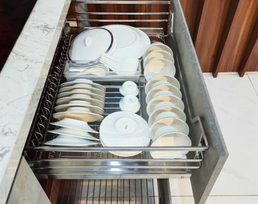 Là phụ kiện được thiết kế dành cho tủ bếp dưới, kệ dạng nan thông thoáng, thoát nước nhanh giúp cho xoong nồi khi úp lên sẽ nhanh khô và dễ dàng lau chùi.