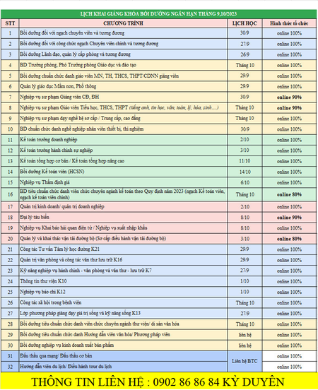 Mobile: 0902 86 86 84( Cô Duyên – Phòng đào tạo)