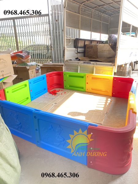 Các bé có thể vui chơi thỏa thích với nhau cùng trái bong tròn nhiều màu sắc trong nhà banh nhựa này.