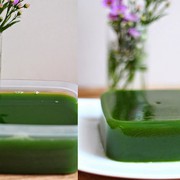 Sau 2-3h, bạn dùng thìa mỏng múc nhẹ từng miếng thạch, thạch găng mềm, mát chứ không quá giòn dẻo như các loại thạch làm từ rau câu hoặc gelatin.