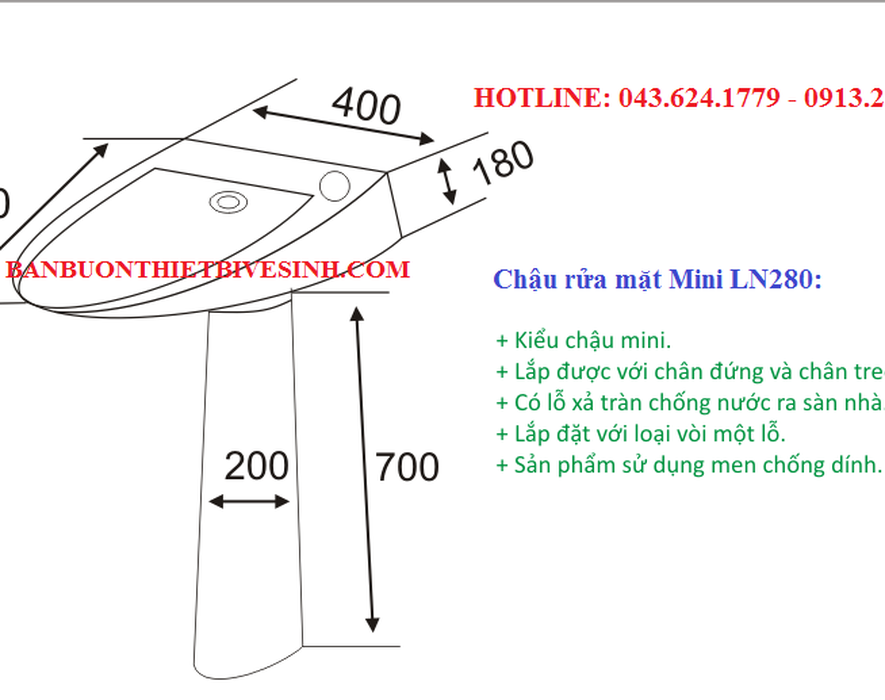 - Sản phẩm: Chậu rửa mặt Mini VN280