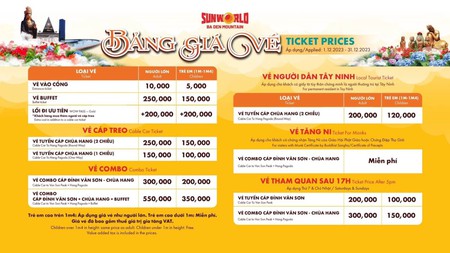 (**) Trẻ em dưới 1m được miễn phí tất cả các dịch vụ trên tại Sun World BaDen Mountain.