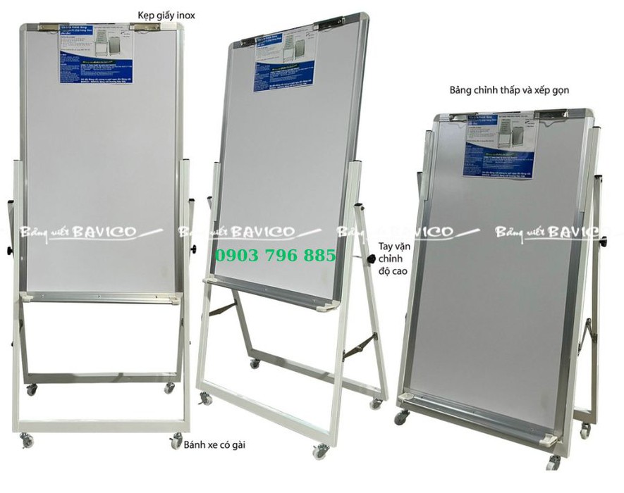 Chân bảng Flipchart bằng sắt sơn tĩnh điện chống sét, chống trầy. Chân bảng xếp gọn được và cho phép điều chỉnh bảng theo chiều cao theo yêu cầu sử dụng. Chân bảng có gắn 4 bánh xe Taiwan di chuyển và cố định dễ dàng.