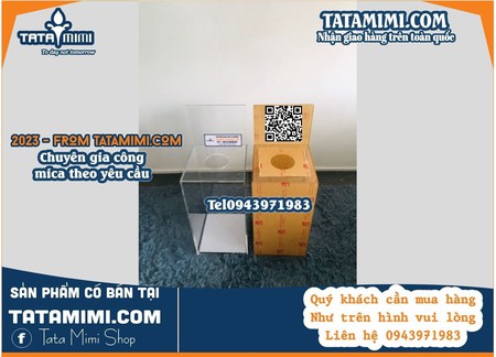 Hòm từ thiện kích thước cao - sản phẩm thùng từ thiện mica: – kích thước tùy chọn (20×20, 25×25, 30×30, 40×40, 50×50) – chất liệu: toàn bộ làm bằng mica đài loan cao cấp, trong suốt. Sản phẩm: hòm từ thiện,hòm phiếu, hòm thư góp ý, hộp mica làm từ mica đài loan có độ dày từ 2mm-10mm, đủ kích cỡ, màu sắc hình dáng theo yêu cầu khách hàng.