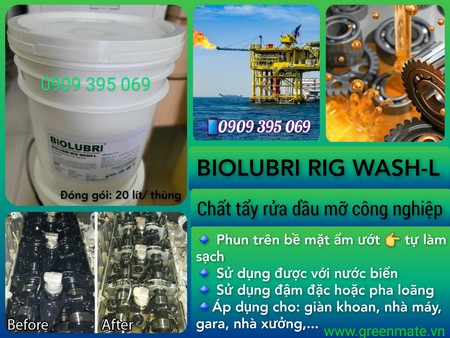 Chứa chất thấm uớt có khả năng phân hủy sinh học& chất thẩm thấu dễ dàng loại bỏ cặn dầu. Chi tiết tại Website: http://greenmate.vn/Biolubri-rig-wash-l-chat-tay-rua-cong...